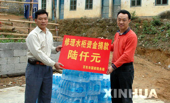 崇左市江州区国税局结合税法宣传投入抗旱救灾工作。一是联合地税等部门举行“情系旱区?我们在行动” 暨崇左市江州区第19个全国税收宣传月活动启动仪式。启动仪式,国税干部向旱区捐款6200元,帮扶群众解决当前生产生活困难。二是开展 “税法进校园”暨“抗旱救灾献爱心”活动。当天,税法宣传小分队深入旱区罗白乡枯隆小学向小学生赠送税收宣传书画150本(册),70多名小学生在“从小诚信做人、长大诚信纳税”字幕上签名,从小接受依法诚信教育;并向这所小学赠送300多桶饮用水,解决旱区师生生活用水问题。三是爱心送水服务队将两汽车生产用水送到罗白乡枯隆村枯隆屯田间地头,与蔗农一起浇淋久旱的春植蔗苗,保证辖区重点税源—蔗糖业持续发展;同时,向该屯群众尤其是五保困难户送去饮用水100多桶,共解水困保民生。(吕卢江 黄珍英)