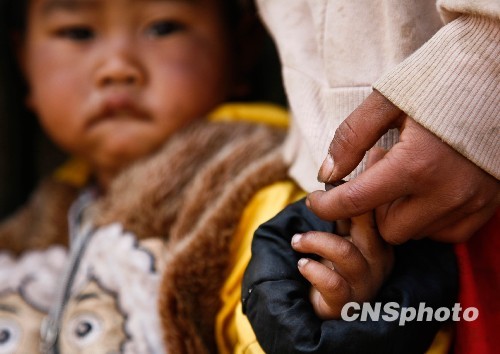 旱区民众的双手正如干裂的大地,需要水的滋润。大旱目前造成云南省828万人、1890万头牲畜饮水出现困难,全省农业直接经济损失已达170亿元。图为云南省蒙自县冷泉镇西牛北村,由于干旱缺水,孩子们很长时间没洗手。中新社发 刘冉阳 摄
