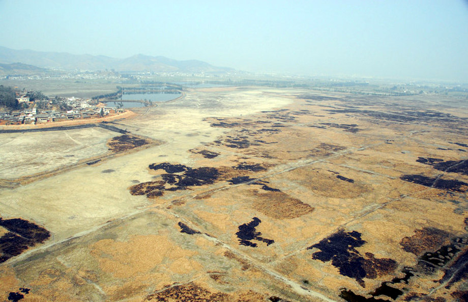 图为2010年3月27日,干涸的大理祥云县青海湖。目前云南的旱情仍然在加重,云南省防汛抗旱指挥部的最新数据显示,截止到3月26号全省饮水困难的人口已经达到了828万,比一周前增加了10多万人口。 小 智 摄