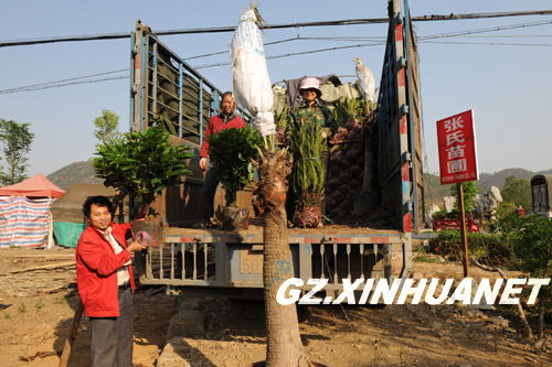 旱情仍在持续,张卫良充满信心抗“长旱”,从外地苗圃运来了一批新苗木(2010年4月8日摄)。新华社记者 朱国贤摄
