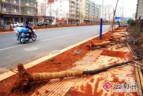 昆明红锦路百余棵行道树旱死 绿化处将更换新树加强管理