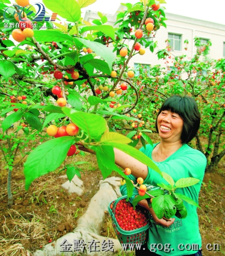 经过抗旱救灾,贵阳市乌当区阿栗村300亩优质樱桃喜获丰收,产量可达13.5万公斤,仅此为农民增收216万元。正在采摘樱桃的新寨村民组村民杨云种了4亩,可收入2.8万元。