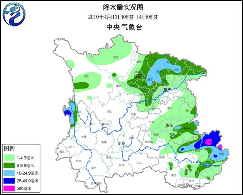 昨天,广西贵州等地的降雨依旧持续着,云南大部依旧没有雨水光临。资料显示,4月13日08时至14日08时,广西东部、贵州东南部、四川东部、云南西北部降小到中雨,广西东北部降大雨,局地暴雨,广西桂林(90毫米)、临桂(63毫米)降雨量较大。