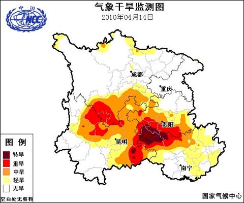 另据国家防总办公室统计,截至4月13日,全国耕地受旱面积1.21亿亩,其中,云南、贵州、广西、四川4省区耕地受旱面积9324万亩、占全国的77%,作物受旱7334万亩(重旱2450万亩、干枯1667万亩),待播耕地缺水缺墒1990万亩。云南、贵州、广西、四川、重庆5省(区、市)有1942万人、1363万头大牲畜因旱饮水困难,分别占全国的79%和75%。