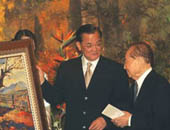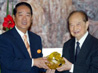 2005年5月2日,连战向汪道涵转交辜振甫当年的画作]]>