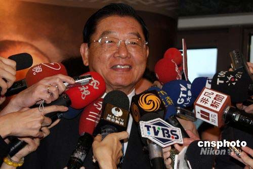 图为江丙坤在现场接受众多记者采访。中新社发 董会峰 摄