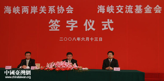 图:海协会在签字仪式之后召开记者会 孙亚夫主持