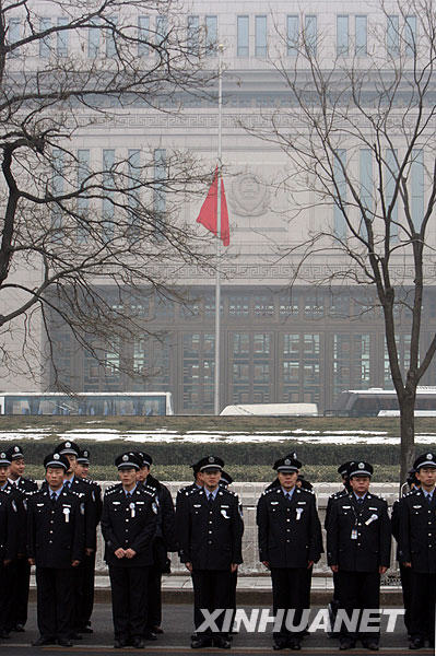 1月19日,根据国旗法相关规定,为悼念八位海地地震遇难中国维和警察,公安部下半旗志哀。新华社记者 陈建力 摄