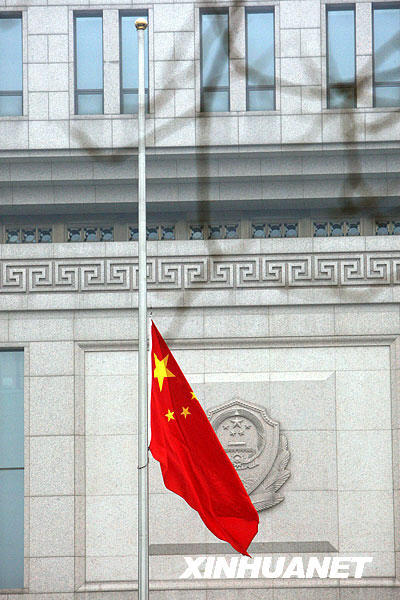 1月19日,根据国旗法相关规定,为悼念八位海地地震遇难中国维和警察,公安部下半旗志哀。 新华社记者唐师曾摄