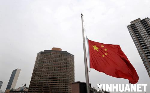 1月19日,在美国纽约中国常驻联合国代表团驻地,为悼念在海地地震遇难的八位中国维和警察,中国常驻联合国代表团下半旗志哀。新华社记者申宏摄