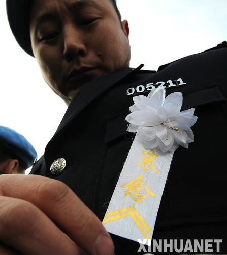 1月20日,向海地地震遇难中国维和警察遗体送别仪式在北京八宝山革命公墓礼堂举行。这是一位曾经参加过海外维和任务的警察准备进入礼堂送别战友。新华社记者谢环驰摄