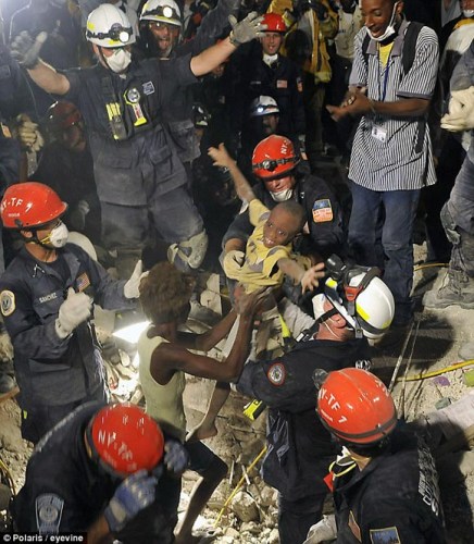 据英国《每日邮报》消息,海地地震发生8天后,生还奇迹仍然不断上演。日前,救援人员从废墟中救出一名年仅7岁的小男孩和他的姐姐,他们在废墟下埋了整整8天,无水无食。重见天日的那一刻,小男孩高兴地张开双臂拥抱妈妈,那一刻,在场的人激动得热泪盈眶。