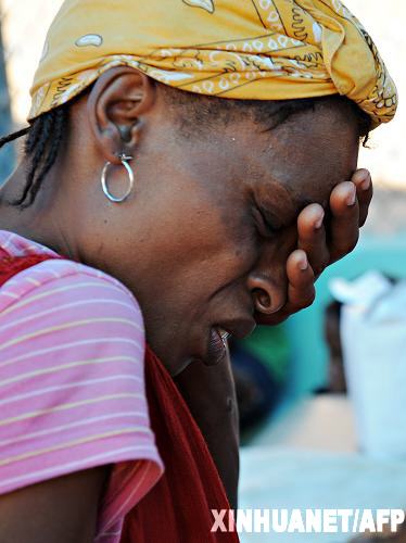 1月22日,在海地首都太子港,一位头痛的妇女在一家以色列急诊诊所等待就医。国际红十字组织官员当日说,海地地震灾区目前已开始出现腹泻、破伤风、流脑、呼吸道疾病等病症。在太子港灾区,一些地方已开始进行清扫、消毒、接种等灾后防疫工作。新华社/法新