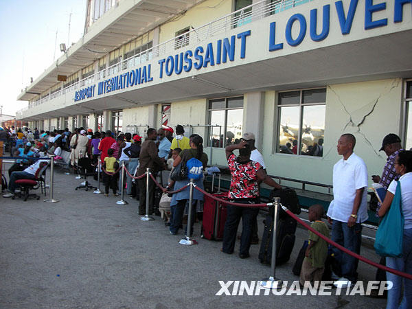 1月17日,人们在海地首都太子港机场排长队等候乘飞机离开。当地时间1月12日,海地发生里氏7.3级地震,造成重大人员伤亡。新华社/法新