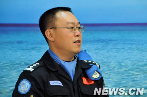 1月18日下午,中国第四支赴海地维和警察防暴队政委陈定武;中国第五支赴海地维和警察防暴队政委、即将再赴海地的胡运旺将做客新华网,讲述遇难的好战友和中国维和。图为胡运旺在访谈中。为新华网 李非摄