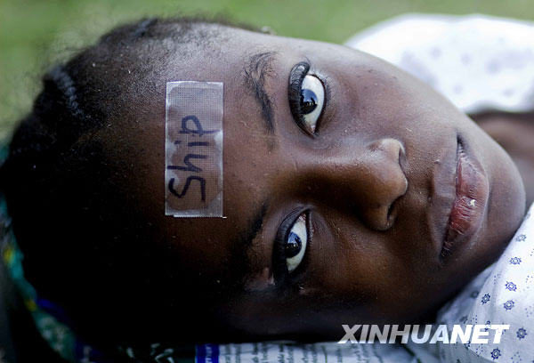 1月21日,在海地首都太子港,一名在地震中受伤的儿童等待转院。