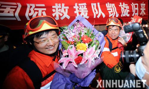 1月27日,救援队队员抵达首都国际机场。当日,中国国际救援队圆满完成海地震后搜救和医疗救治任务返回北京。 新华社记者王建华摄