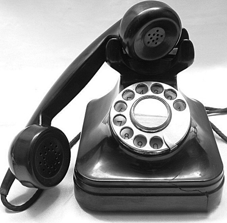 在10岁的光景,我第一次见到了电话,那是部手摇式总机转接电话,俗称“摇把子”。那年学校放了暑假,我到父亲办公室玩耍,一眼瞧见了大木桌上摆放一个黑色方匣子,头部倒挂着话筒,侧面伸出一个小摇把。父亲走到木桌前,左手死劲按住话筒,右手飞快转动摇把,“呜-呜-呜-”,黑匣子一声紧似一声地嘶鸣,他拿起话筒,拉长嗓门:“总机、总机,我是郑公渡粮管所,请挂一下汪家叉粮站啦……”呼叫完毕,放回话筒,约摸过了一袋烟的工夫,黑匣子“叮铃铃-叮铃铃”地尖叫起来,父亲急忙抄起话筒:“是汪家叉粮站吗?我找王主任啦……”