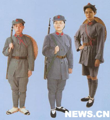 以后,各根据地红军的服装据此逐渐统一,颜色多为灰色。