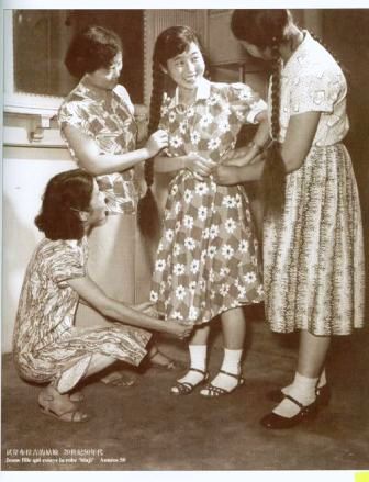 1950年代末到1960年代初,新中国经历了“大跃进”、“大炼钢铁”和“大饥荒”时期。虽然漂亮的麻花辫仍然是女孩子钟爱的发型,包括“文革时代”的女红卫兵,但是麻花辫已经短了许多,长及双肩或者更短。