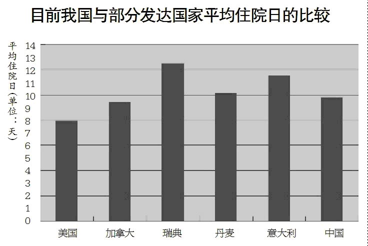 平均住院日是另一个衡量医疗服务效能的指标。2007年我国医院的平均住院日为9.8日,比1990年缩短近5天,反映出医院管理理念从单纯规模扩张到“练内功”的转变,客观上起到了降低群众医药费用的作用。目前,我国平均住院日已经与部分发达国家基本持平,如美国的平均住院日为7.9天,加拿大为9.4天,瑞典为12.5天,丹麦为10.1天,意大利为11.5天。