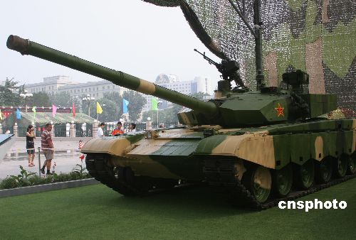 资料图:2007年7月16日,纪念建军80周年大型主题展览《我们的队伍向太阳--新中国成立以来国防和军队建设成就展》在中国人民革命军事博物馆正式开幕。展会上展示了数十件国产最新型陆空主战装备。 中新社发 吴芒子 摄