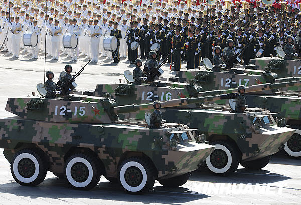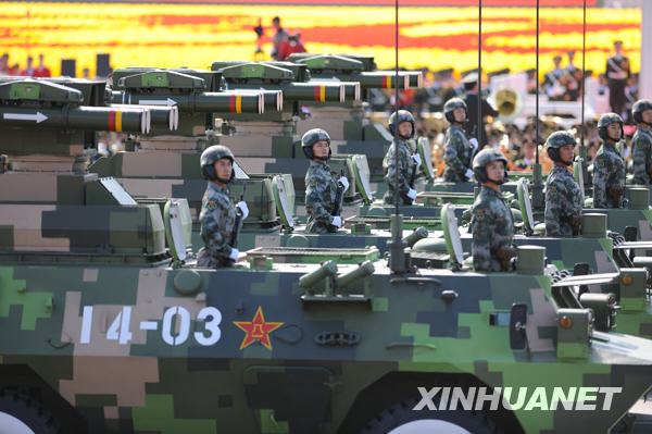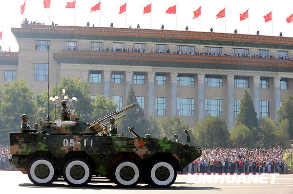 10月1日,首都各界庆祝中华人民共和国成立60周年大会在北京举行。这是轮式步战车方阵通过长安街。新华社记者徐昱 摄
