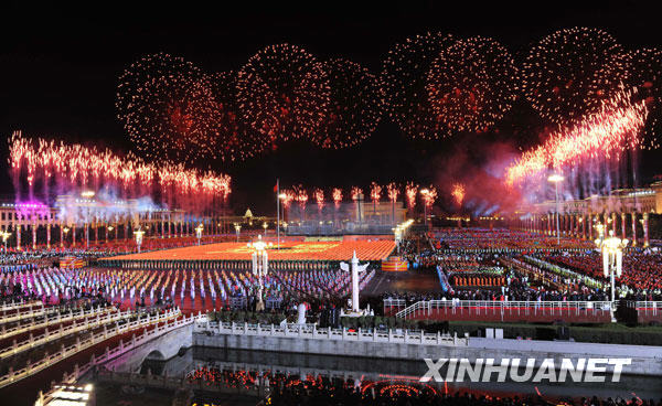 10月1日晚,首都各界庆祝中华人民共和国成立60周年联欢晚会在北京天安门广场举行。新华社记者 郭大岳 摄