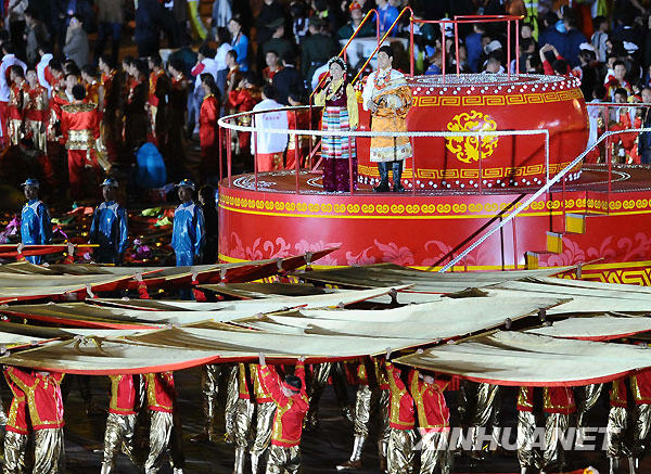 这是演员进行联欢表演《和谐中国》。