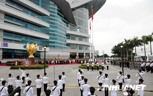 10月1日,香港特别行政区在金紫荆广场举行升旗仪式,庆祝中华人民共和国成立60周年。新华社记者陈铎摄