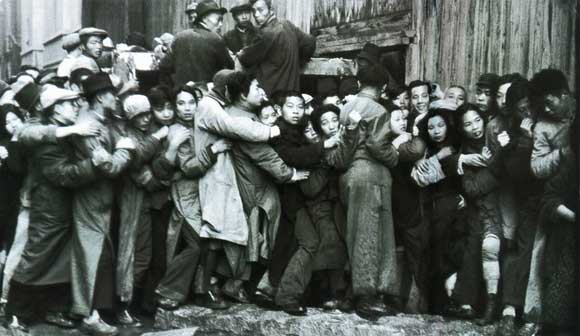 1948年12月,通货膨胀期间,涌入某银行的上海市民,欲将货币兑换成黄金