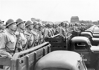 开国大典阅兵: 陆军戴钢盔,海军着海魂服