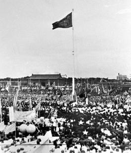 这一天,一个旧政权在哀叹里覆灭;这一天,一个新中国在欢呼中诞生。迎着东方黎明的曙光,中华民族获得新生——