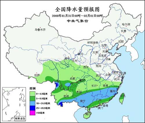 31日至2月1日,西藏东部、青海东南部、西北地区东南部、江汉西部、江南中西部偏北地区以及西南地区北部和东部等地阴有小到中雪(雨)或雨夹雪,其中,西藏东南部、云南西北部和东北部以及川西高原南部的部分地区有大到暴雪。贵州、湖南南部、江西中部等地的部分地区有冻雨,云南南部的部分地区有大雨。