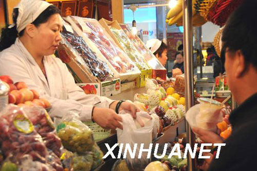 资料图片:2月11日,哈尔滨市民在奋斗副食商场挑选水果。新华社记者 徐宜军摄