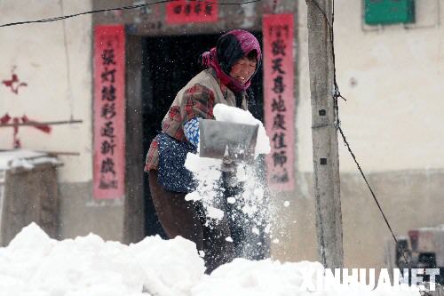 1月30日,岳西县石关乡一村民清扫门前积雪。 当日,地处大别山区的安徽岳西县再遭暴雪袭击,岳西县石关乡积雪超过60厘米,交通受阻,当地群众生活受到严重影响。 新华社发(储永志 摄)