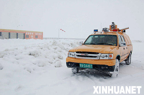 1月30日,在云南香格里拉机场,工作人员开车巡逻。 新华社记者 关桂峰 摄