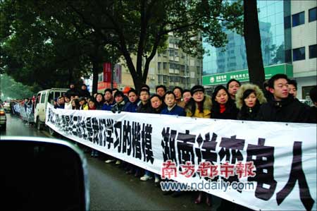 昨日,数万市民自发地从四面八方汇集到罗海文、罗长明、周景华三位烈士灵车经过的路上,怀着万分悲痛的心情向三位英雄作最后的道别。
