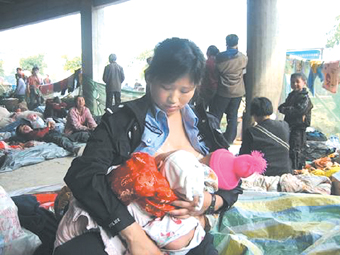 “别急,慢慢吃,宝宝要乖哦!”蒋晓娟以女性特有的温柔、体贴,安抚着这些尚不谙世事的婴儿。看着自己家的小孩在地震几天后,终于吃上了一口母乳,许多受灾群众都激动得流下了热泪。