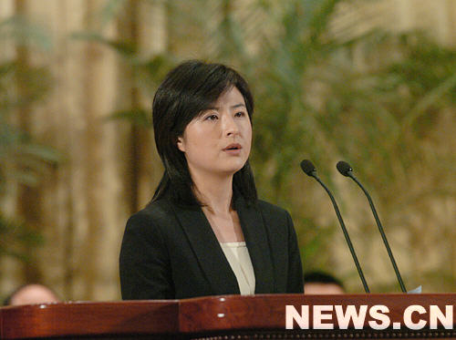 图为中央电视台主持人张泉灵同志在作报告 新华网 陈竞超 摄