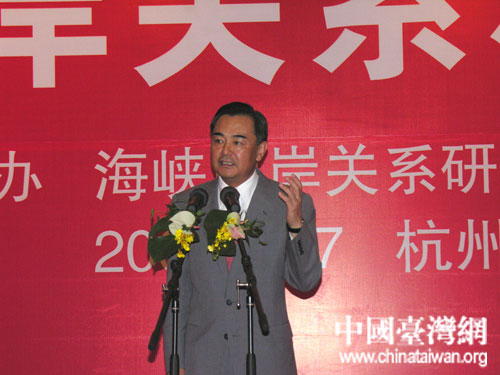 中共中央台湾工作办公室、国务院台湾事务办公室主任王毅在晚宴上致欢迎辞(中国台湾网李杰 摄)