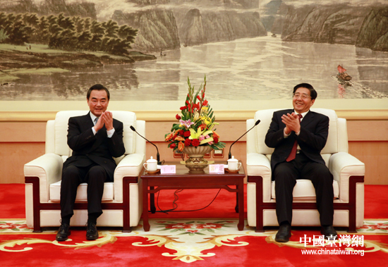 17日晚,广西壮族自治区党委书记郭声琨会见来桂林参加第九届两岸关系研讨会的中台办、国台办主任王毅。(中国台湾网 钟宝华 摄)