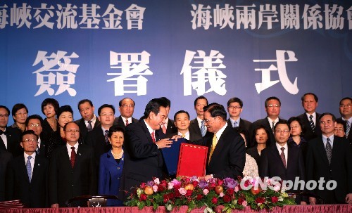 中新网12月22日电 据“中央社”报道,两岸两会领导人今天签署3项新协议,为第四次会谈划下圆满句点。尤其,海基会在签署仪式后、致赠大陆海协会礼品带有“安定和平”意义,寓意深长。
