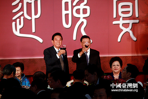 陈云林与江丙坤共同举杯,预祝本次会谈取得圆满成功(中国台湾网 李徽 摄)