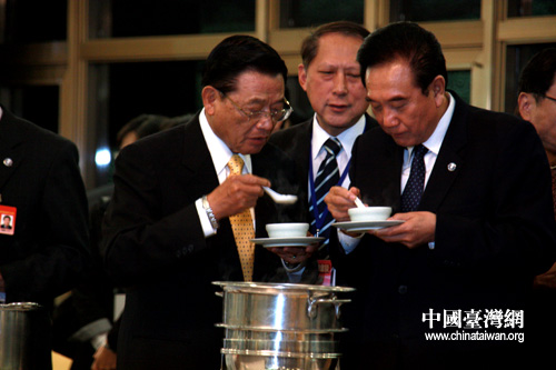 陈云林与江丙坤边食用汤圆,边轻松交谈 (中国台湾网 李徽 摄)