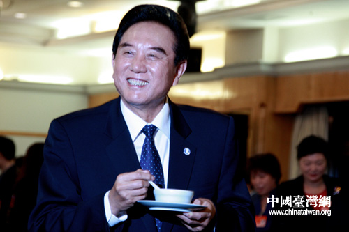 陈云林吃着台湾汤圆,笑容愉悦(中国台湾网 李徽 摄)