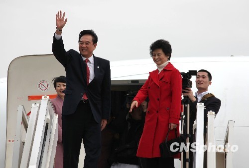 十二月二十五日中午,海协会会长陈云林率领的海协会代表团圆满完成两会领导人第四次会谈的所有行程,乘坐包机,由台中返回北京。 中新社发 曾嘉 摄