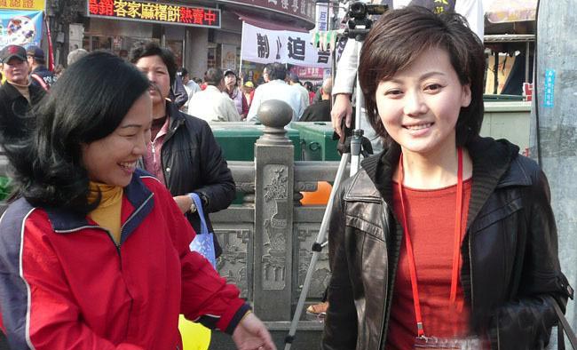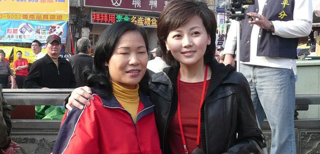 央视美女主播柴璐(右)在大甲镇澜宫遇见女粉丝,并被要求合影。