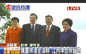 据台湾TVBS报道,陈云林今天就要搭机离台,今早特地起了大早,去浏览日月潭周边美景。