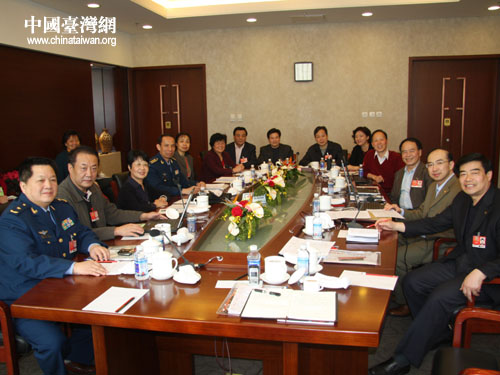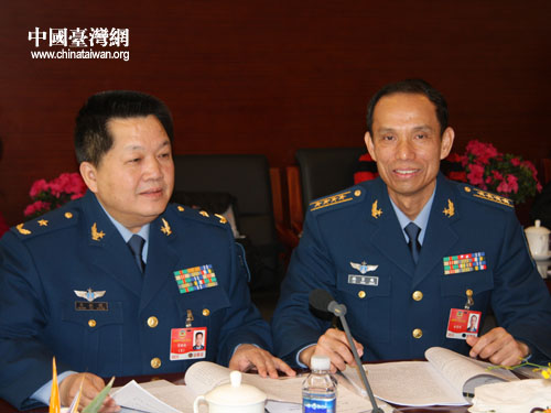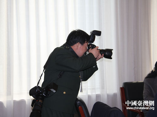 中国台湾网3月10日北京消息 今天上午,全国政协会议台联界别组正在举行热烈的小组讨论,一位身着戎装的解放军记者突然带着两台相机出现在会场,并向台联组的两位军人委员热情的打招呼。这时在场的其他委员和记者才恍然大悟,今天黄植诚和林贤顺两位委员之所以穿着笔挺的军装出席小组讨论,是因为早就心知肚明要“出镜”呢!(贺晨曦 文 贺晨曦/赵辉 图)